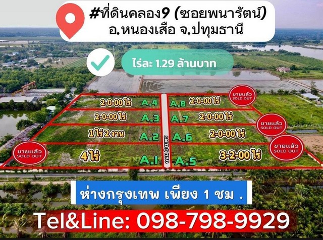 ที่ดินคลอง9 (ซ.พนารัตน์) รังสิต ปทุมธานี ไร่ละ 1.29 ล้านบาท (เข้าจากถนนรังสิต นครนายก 2.8 กม.)