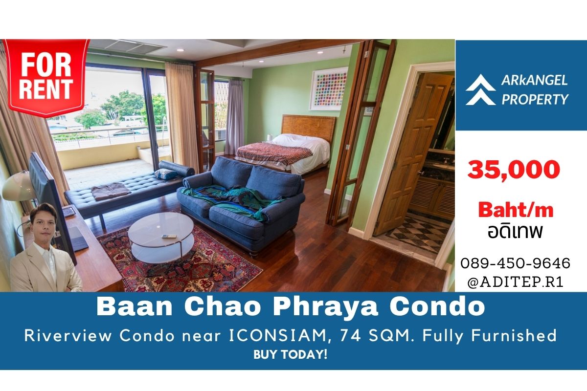 ให้เช่า คอนโดบ้านเจ้าพระยา 74 ตร.ม. 1 ห้องนอน ชั้น 4 คอนโดริมแม่น้ำ ใกล้ ICONSIAM เฟอร์ครบ ตกแต่งสวย พร้อมอยู่