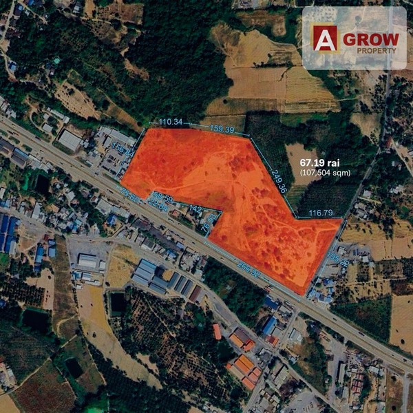 ขายที่ดินจำนวน 67.19 ไร่ สีเหลืองติดถนนใหญ่...