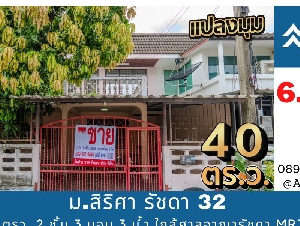 ทาวน์เฮ้าส์หลังใหญ่ 40 ตรว. หมู่บ้านสิริศา รัชดา...